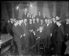 United States President Warren G. Harding poses with men by a pool table.The Harry M. Rhoads Photograph Collection, Western History/Genealogy Dept., Denver Public Library.